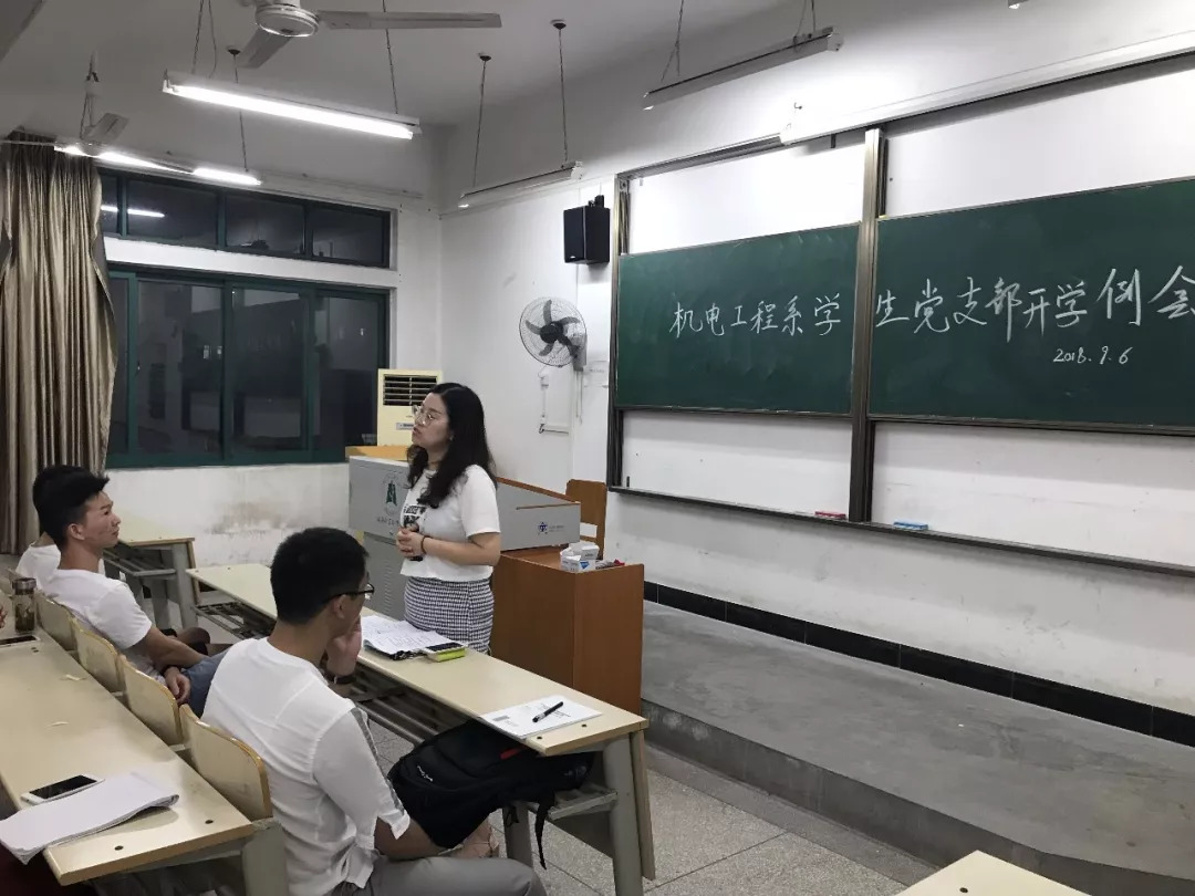 9月6日晚上19:00,机械与自动化学院学生党支部新学期工作例会于知新楼305教室召开,此次会议由机械学院学生党支部指导老师石晶晶主持,参加本次会议的有学生党支部全体在校学生党员。