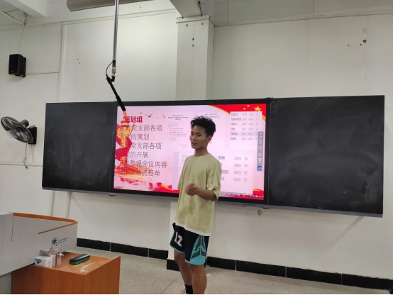 会议伊始,由执行委员孔维安同志通报与会情况。随后由执行委员覃粤同志介绍党支部架构及各党小组情况,并展示党支部活动照片,加强各入党积极分子对党支部的了解与认知。