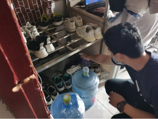 学生党员、学生干部、入党积极分子们积极发挥先锋模范带头作用,踊跃参与卫生消杀,对内八、外一两栋宿舍楼进行全方面、全覆盖、无死角的宿舍及公共区域消杀检查工作,彻底阻断新冠病毒的传播途径,确保疫情防控工作零盲区。