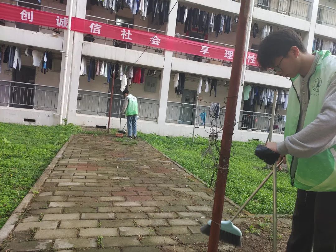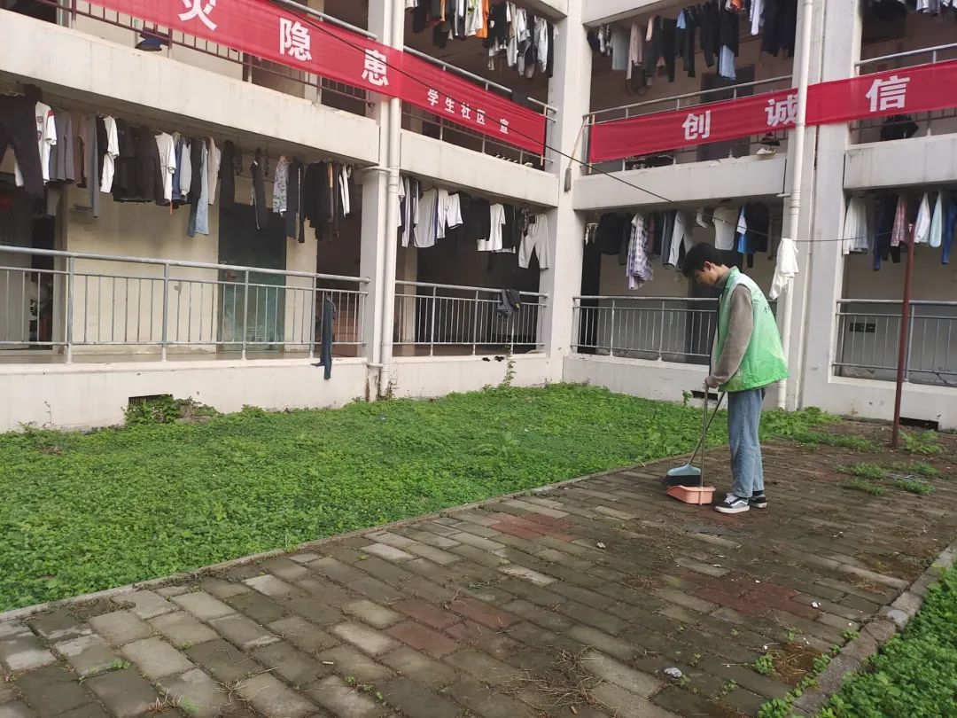 机械学院学生党支部组织开展公寓楼道天井清扫活动