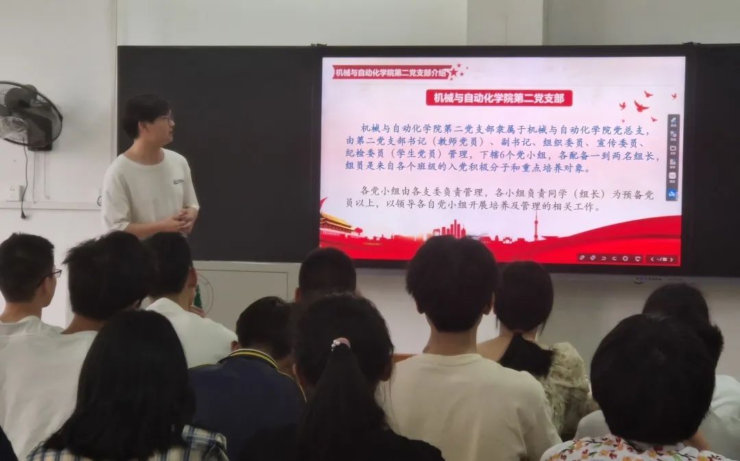 为进一步加强同学们对党的基础知识的了解,提高党校学员思想觉悟和政治素养,培养新时代合格党员,机械与自动化学院第二党支部于4月12日下午17点35分,在三教301召开第38期党校动员大会。会议由机械与自动化学院第二党支部副书记韩霄同志主持。