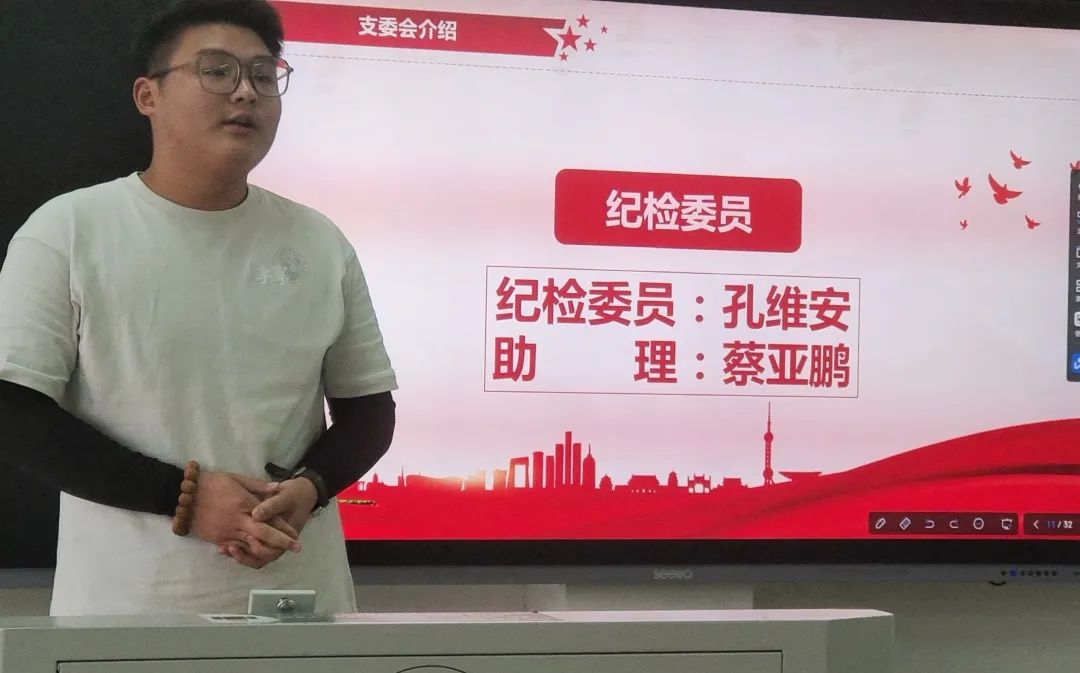 分别由韩霄,罗文璋,章浩及蔡亚鹏四位支委依次对支委会介绍。