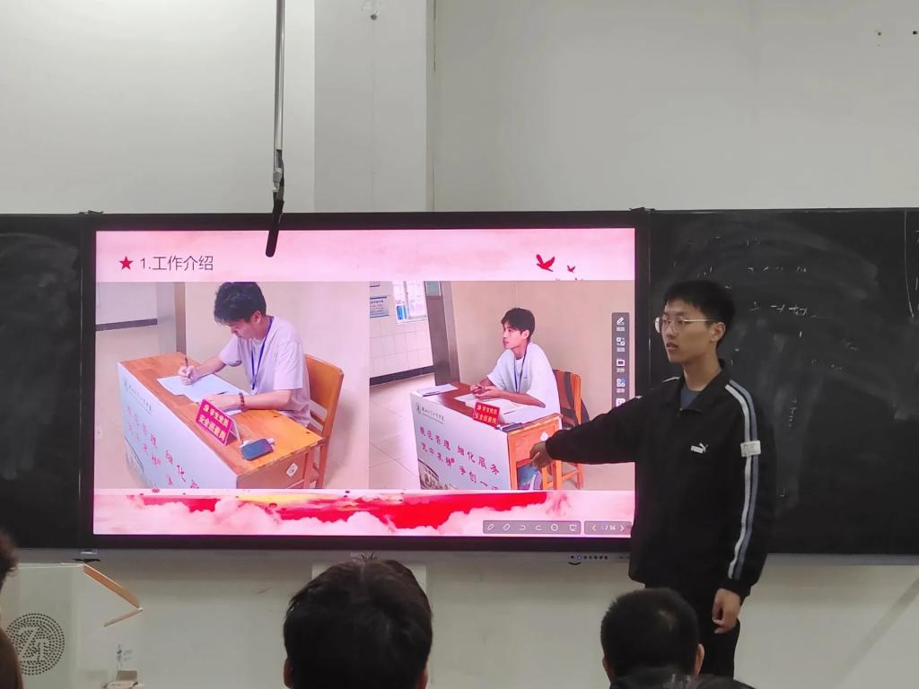 机械与自动化学院第二党支部督查组组长向青松分别从“值班工作”“督查工作”“注意事项”三个板块依次详细地为大家介绍了楼道值班工作的具体情况以及工作流程,并根据以往工作的实际状况着重讲解了楼道值班过程中需要注意的一些纪律事项,帮助同学们更好地熟悉工作内容,提前预警各种工作问题。
