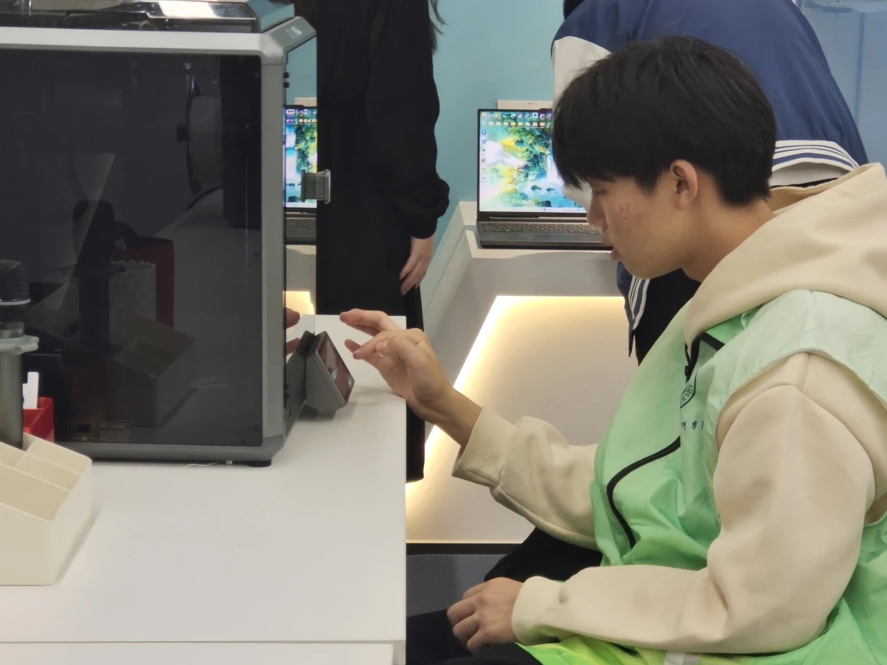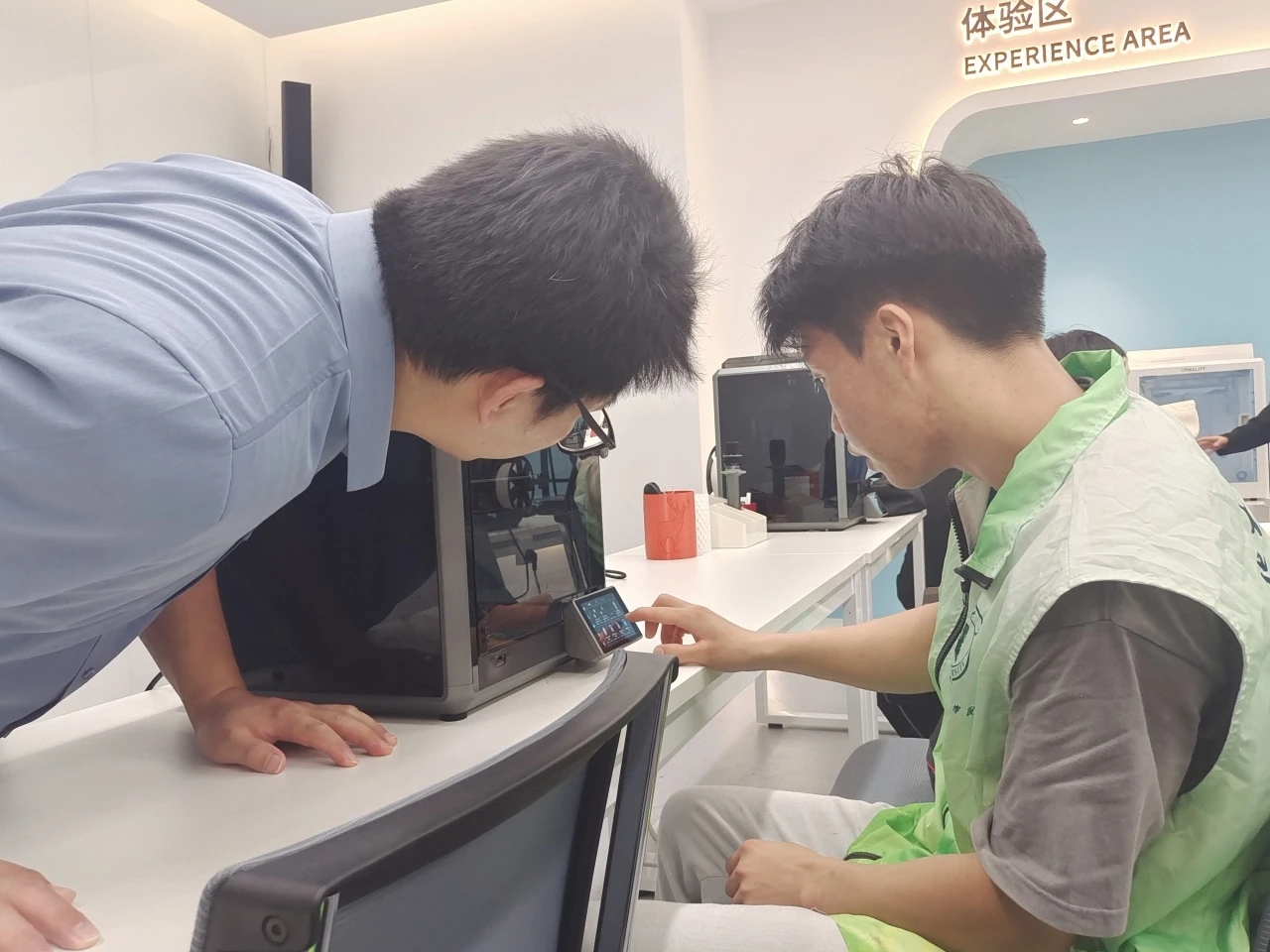 在体验环节,每位志愿者都动手操作,使用公司产品Sermoon D3打印机,打印出自己心怡的作品,直观地感受到了创想三维产品的性能,并了解了其基本运行原理与模型结构。