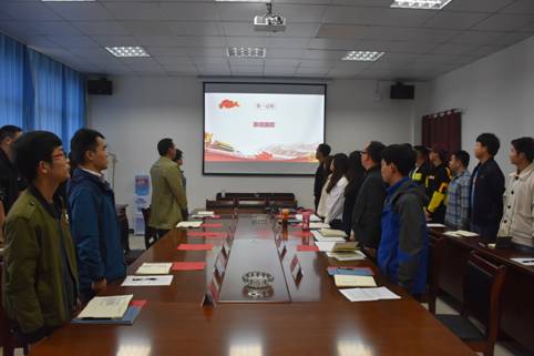 会议第三项,陈驰同志带领全体党员面向党旗重温入党誓词。
