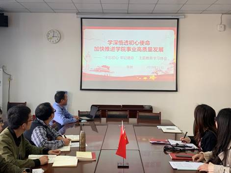按照湖北大学“不忘初心、牢记使命”主题教育总体安排,根据学校主题教育实施方案,11月14号下午,机械学院党总支支部书记陈驰在会议室为全体教职工党员讲主题教育专题党课。