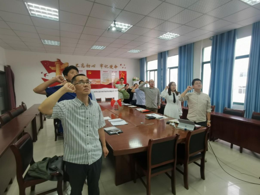 会议第一项,重温入党誓词,由邢宏根同志领誓。
