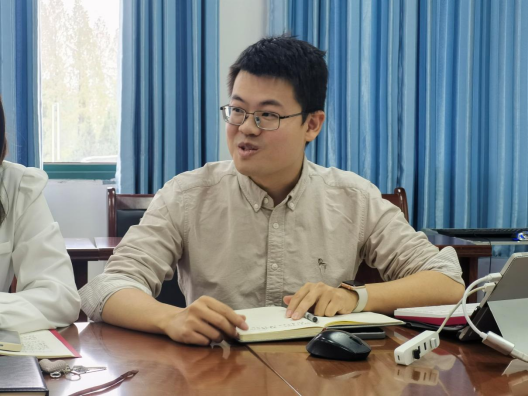会议第四项:“树典型、扬新风”党员交流发言。宋涛老师谈了如何切实察民情解民忧,深入学生宿舍开展活动。