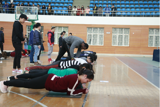本次比赛将由每个系选拔五名同学参赛,金牌健身教练作为此次比赛的裁判,为选手们进行动作上的纠正和看护。下午1点多,参赛选手陆陆续续来到了比赛场地并做起了热身运动,在比赛开始前,由裁判代表进行了裁判员宣誓。比赛集中进行,参赛的选手们均使出了浑身解数,展示了坚强的意志力,每位选手都不断突破自己,即使浑身颤抖、汗流浃背,仍咬牙坚持。