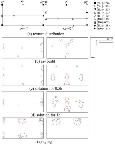 热处理过程中镍基718合金ODF(三维取向分布函数)变化