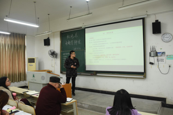 毕业设计开题答辩是一个增长知识,交流信息的过程,不仅学生可以从答辩老师那里获得新的知识和宝贵的建议,而且答辩老师也可以从有独特见解的学生设计中得到启迪。同时,毕业设计答辩是大学生全面展示自己的德、智、体和口才的最佳时机。此次毕业设计答辩给同学们提供了一个实战性的平台,考验了同学们的胆量与魄力,同时也体现了机械学院在新时代背景下对教育体系的完善程度。