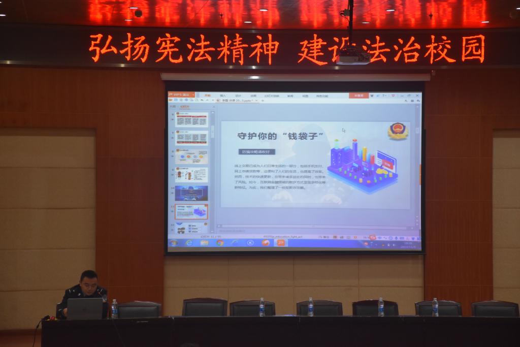 在此次校园安全教育中,所长以校园拍摄视频真实再现了校园内教室和食堂常见盗窃案,提醒同学们注意财产安全,提高对内盗的警惕,并树立“珍爱生命,远离毒品”意识。还通过真实电话录音来分析诈骗分子行骗套路,告知同学们警方的正规工作流程,以提高同学们对诈骗行为的辩识能力。此外,所长还针对近些年高校发生频率较高的案件---校园贷,做出详细介绍和讲解,提醒同学们远离校园贷款。并再次特别提示,任何网贷机构都是不允许向在校大学生发放贷款的,提醒新生选择合法途径借贷。