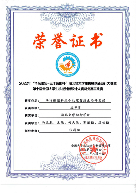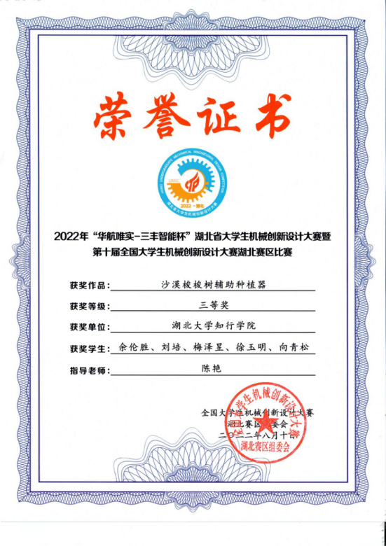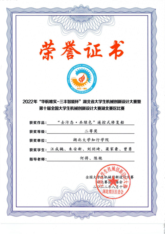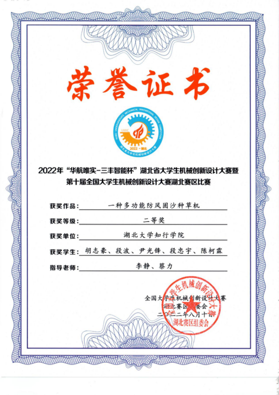 2022年湖北省大学生机械创新设计大赛暨第十届全国大学生机械创新设计大赛在武汉科技大学举行,本届大赛由全国大学生机械创新大赛组委会以及教育部高等学校机械基础课程教学指导委员会联合主办。机械创新大赛是本专业举办的最高级别赛事,是机械学院科研水平和学生综合实力的试金石,历来为各高校高度重视。本次大赛开云官网获二等奖3项,三等奖3项。