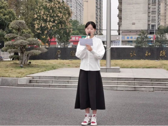 本次升旗仪式在党的二十大召开之际举行,以勉励同学们顺应时代发展,踔厉奋发向前行,愿同学们都能勇于担当、自强不息,不负这盛世之中华!
