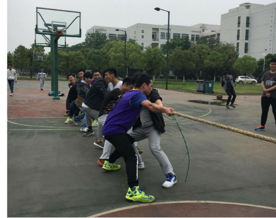 本次活动分为三个项目:拔河比赛、水杯接龙和篮球比赛。机电系各班同学在学生会成员的指导下先做了一些热身游戏,现场气氛一下子就活跃了起来,之后同学们以自己班级分队,进行三个项目的激烈角逐。