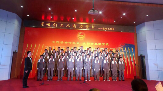 本网讯(通讯员张中一) 4月27日下午,各系期待已久的“五月的鲜花”合唱比赛在知远楼201学术报告厅正式拉开序幕。机电工程系凭借别出心裁的着装,响亮的歌声,以一曲《咱们工人有力量》赢得全场掌声最高点。