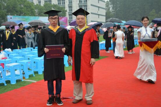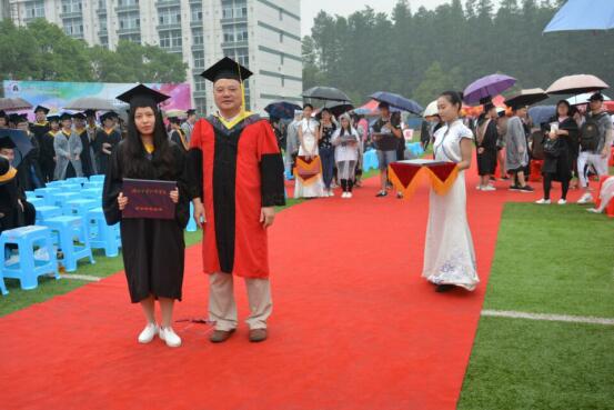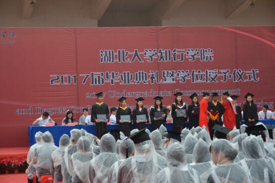 2017年上午8:00,2017届毕业典礼暨学位授予仪式操场上如期举行,即使天上下着大雨、也无法磨灭毕业生的热情,随着各项奖项颁发和优秀代表致辞的结束,毕业典礼也接近尾声,接下来就是学位授予仪式。湖北大学机电工程系系主任:王代萍老师为机电工程系全体毕业生拨流苏,毕业生们身穿学士服,头戴学士帽,井然有序地进行仪式,王老师把毕业生们学士帽的流苏从右边拨到左边,并合影留念,这意味着毕业生们正式毕业了!