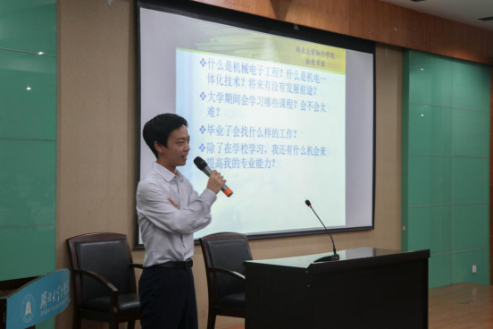 会议由院学生会副主席陈金鑫主持。介绍会期间,院长和老师们的讲解使得新生们恍然大悟,他们从各个方面介绍机械电工类的情况。介绍会上,王院长从“为什么要上大学,上大学要学什么,能干什么”三个方面详细给新生做讲解,让新生更快度过刚刚步入大学的迷茫期。