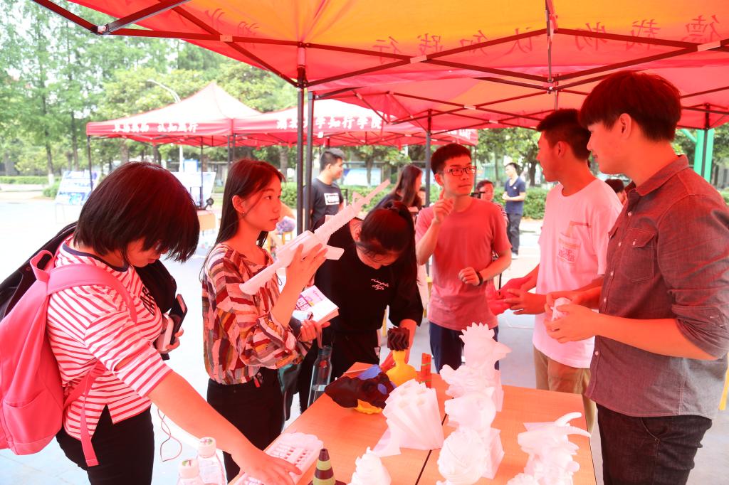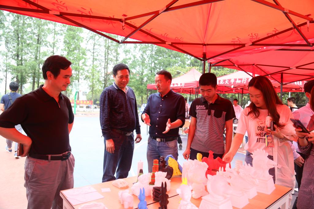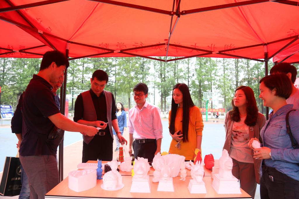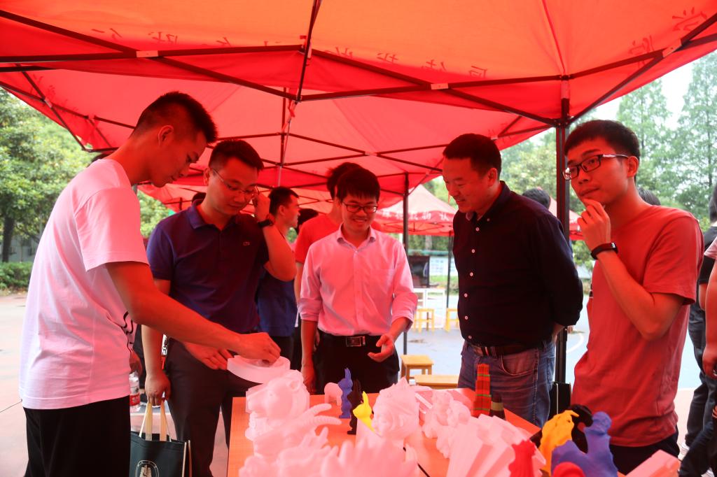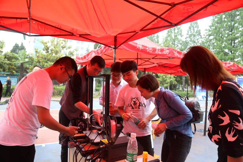 为展示我校科技育人成果,激发我校学生对科学、技术尤其是工程和设计创意的兴趣,促进3D打印技术与创新创意融合发展,培养造就“大众创业,万众创新”的主力军,机械与自动化学院于5月17日上午,在坤生园门口篮球场举办3D打印科普日活动,校长卜诗祯,副校长陈刚、黄智凌、王文凯,学工处处长王刚等校领导莅临现场,参与活动指导。